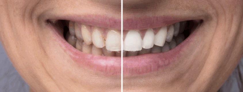 C’est l’application d’un gel (peroxyde de carbamide ou peroxyde d’hydrogène) qui pénètre dans l’émail et décompose les taches internes, modifiant la couleur de la dent.
